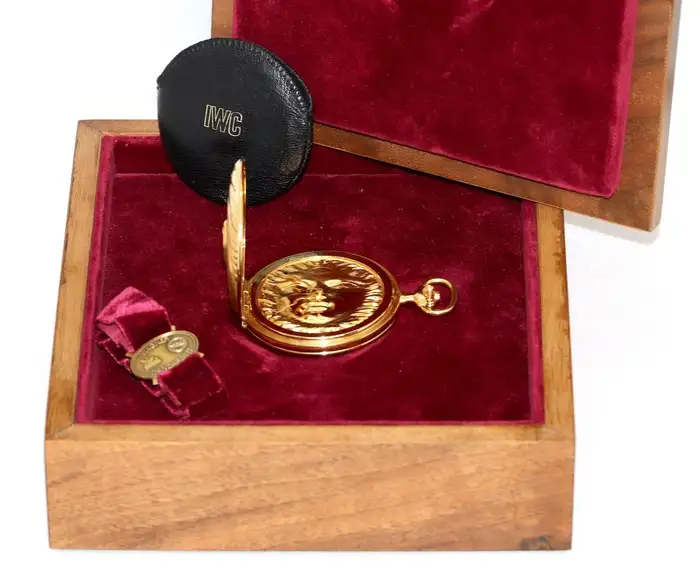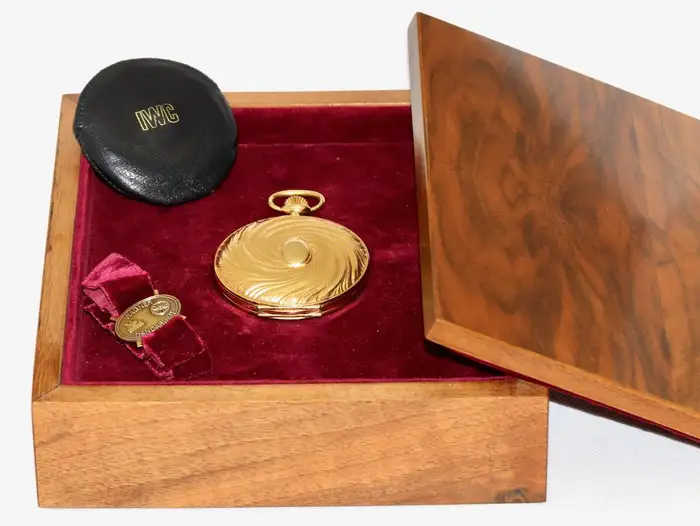 Pocket watch: limited IWC pocket watch, rarity in the 18K solid gold version, 'Scarabaeus-Fuchs-Savonnette', Schaffhausen, around 1982 with original box