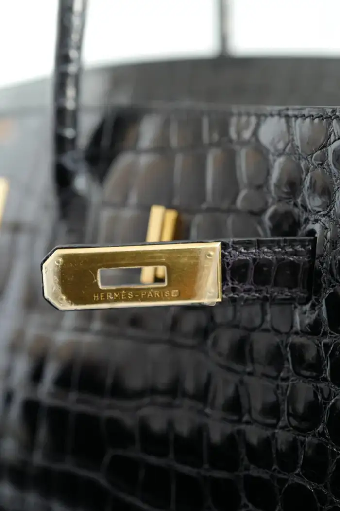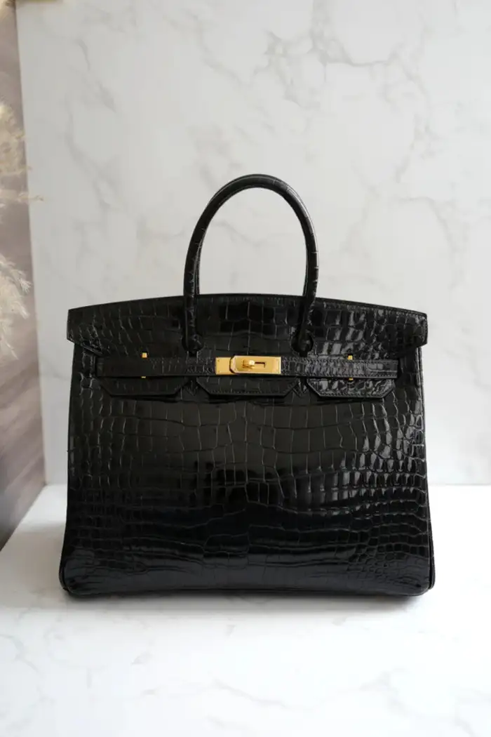 A coveted collector’s piece, the Birkin 35 in Shiny Black Porosus Crocodile is an investment in timeless elegance. Whether for daily wear or as a prized addition to an Hermès collection, this handbag embodies heritage, luxury, and exclusivity.