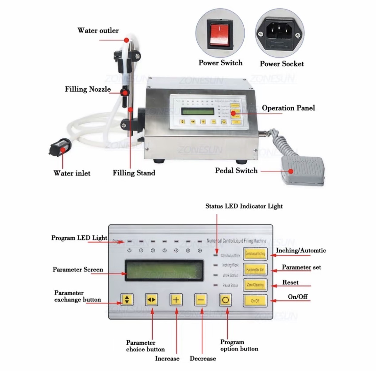 • 8.Save up to 6 sets of parameters for different-sized bottles and can choose from easily.